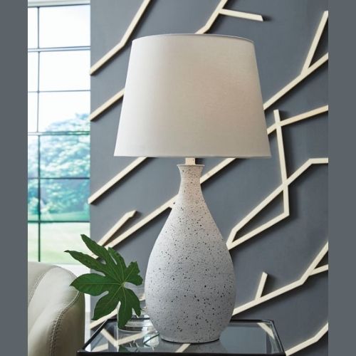 This table lamp takes contemporary style to new heights. An elegant teardrop silhouette and a textured speckle finish make it all the more stunning wherever you decide it shines brightest.